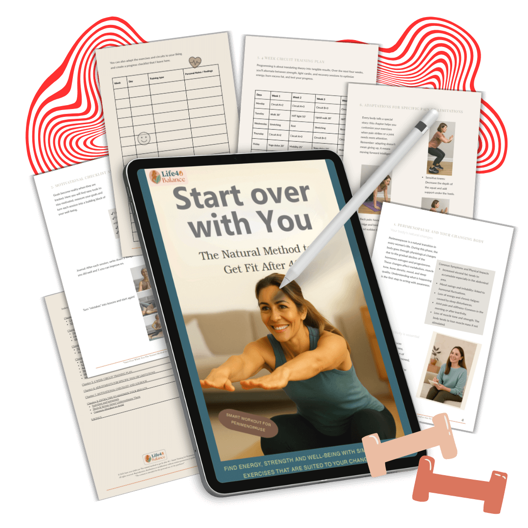 Follow the ready-made meal planners, do short workouts, and practice stress-relief techniques tailored for women over 40.